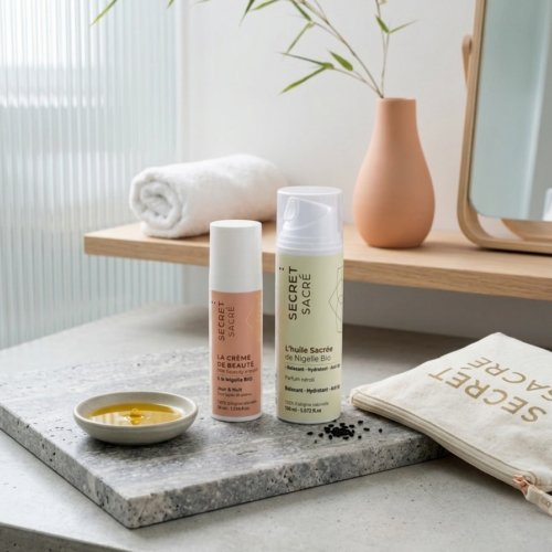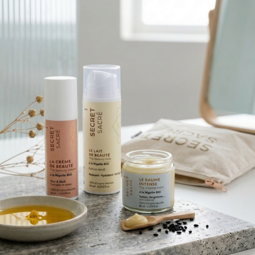 Une crème visage magique que l’on se passe de mères en filles, un savon artisanal comme on faisait il y a un siècle qui restitue tous les bienfaits de ses huiles végétales… Découvrez nos soins pour le visage à la nigelle de secret sacré, la 1ère marque de Haute Cosmétique Bio dédiée à la nigelle.