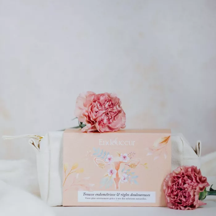 Endouceur : Les soins pour adoucir les douleurs liées à l’endométriose et aux règles douloureuses. 4 produits naturels qui seront vos alliés pour alléger vos douleurs, le tout regroupés dans une jolie trousse en coton. Retrouvez l’Huile de nigelle – Secret Sacré, le Baume – Bâubo, le Gants de Garshan – Aunor, l’huile essentielle Synergie – Gaïarôme, accompagnez par un petit magazine qui vous expliquera comment appliquer ces produits aux vertus exceptionnelles.